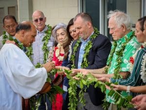 Kahu Kordell Kekoa blesses the first phase of Koa Vista with Governor Green and other key stakeholders.