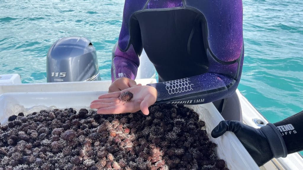 One million and thirteen thousand tiny creatures later, the program is working and in full swing. Regular monitoring informs the team when there is algae regrowth and the need to “plant” more sea urchins.