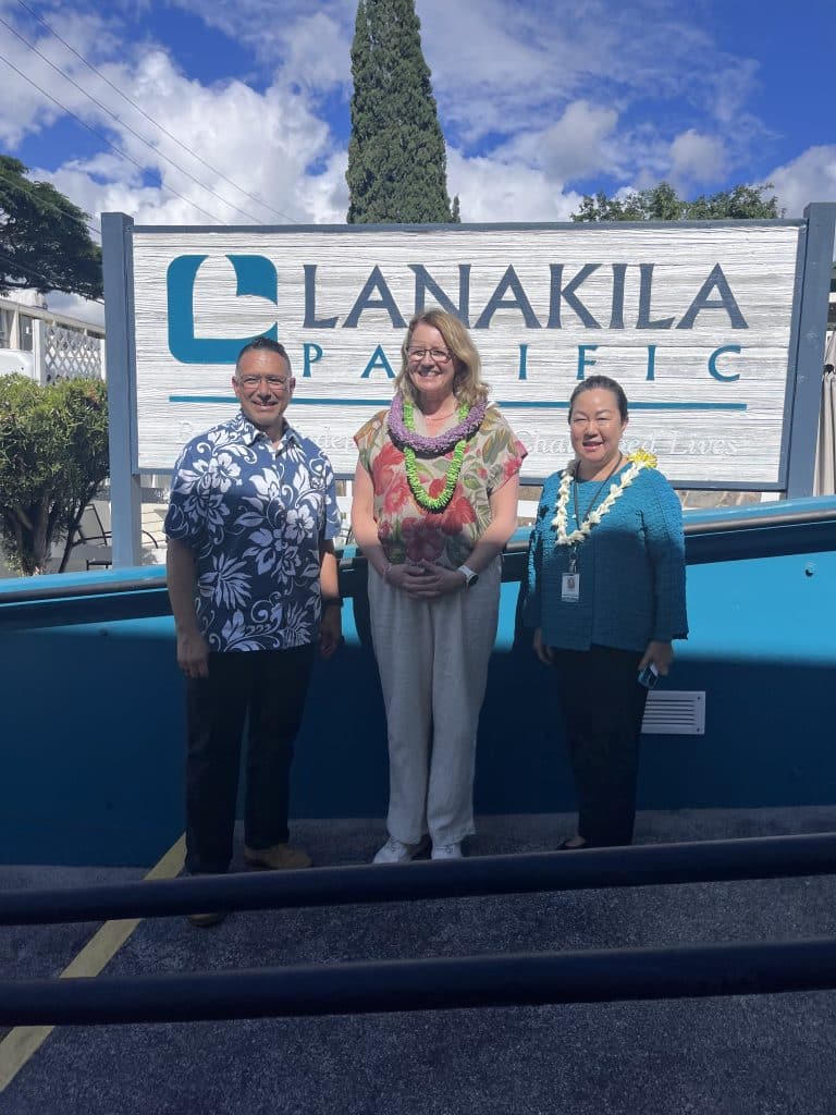 From left to right: HI-EMA Administrator James Barros, former U.S. FEMA Administrator Deanne Criswell and Lanakila Pacific President and CEO Rona Yagi Fukumoto. Photo courtesy: HI-EMA.