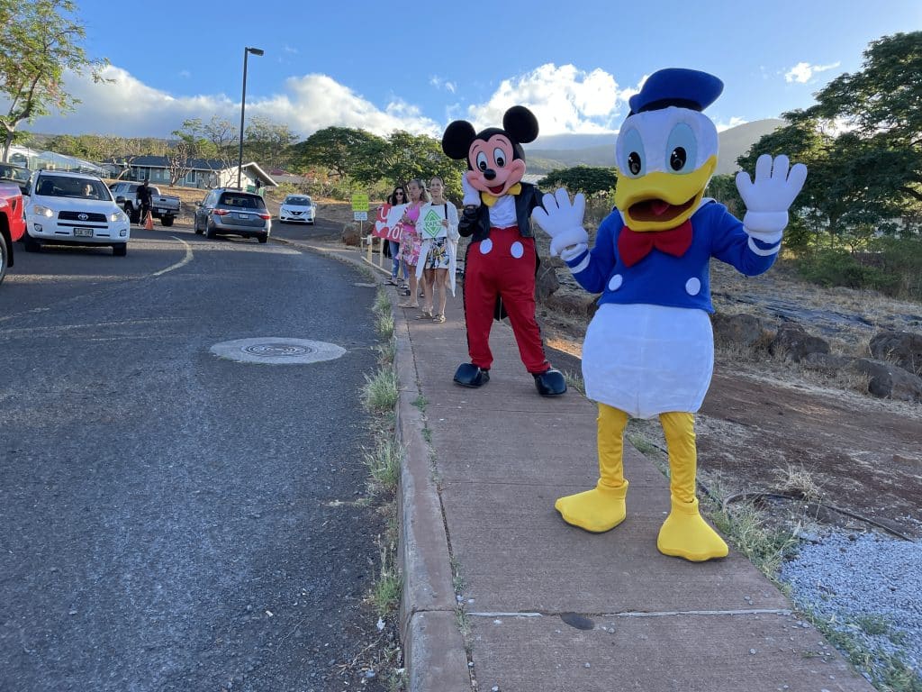About a dozen staff and community members, some dressed as Mickey Mouse and Donald Duck, lined the entr­­ance of the campus with signs and cheered on parents during drop-offs. Both principals also welcomed students by directing traffic and assisting them with check-in.