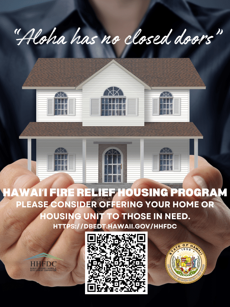 HONOLULU – A new flyer spotlights the urgent need for more property owners to offer up their homes and dwelling units through the Hawaiʻi Fire Relief Housing Program.